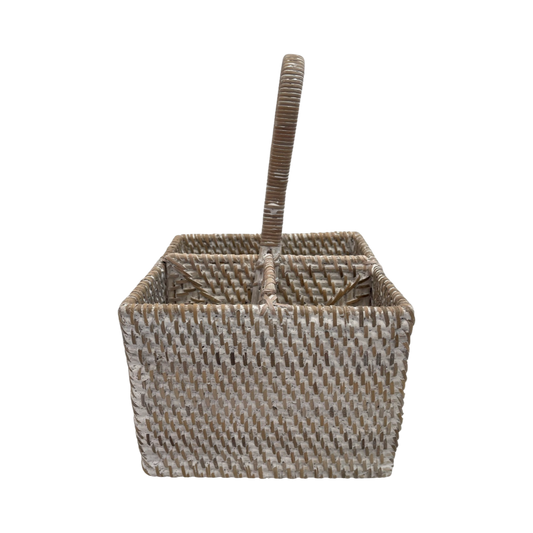 RATTAN CUTLERY HOLDER | WHITEWASH