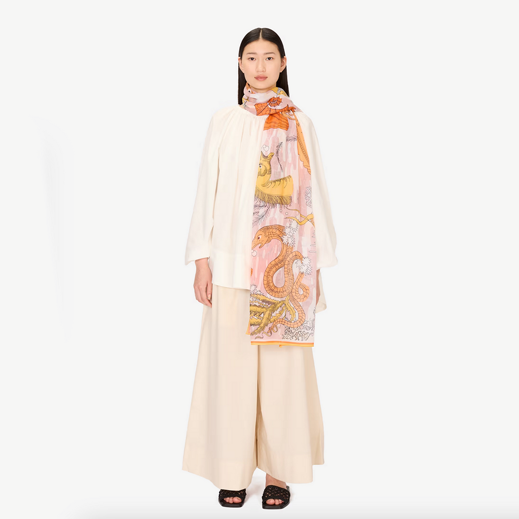 Each Inouï Editions scarf design is hand drawn in their atelier in Baie de Somme, France. The scarves are then made in India using traditional hand looming and printing techniques and the finest of natural fibres. The result is a whimsical and colourful collection that oozes Parisian bohemian charm.