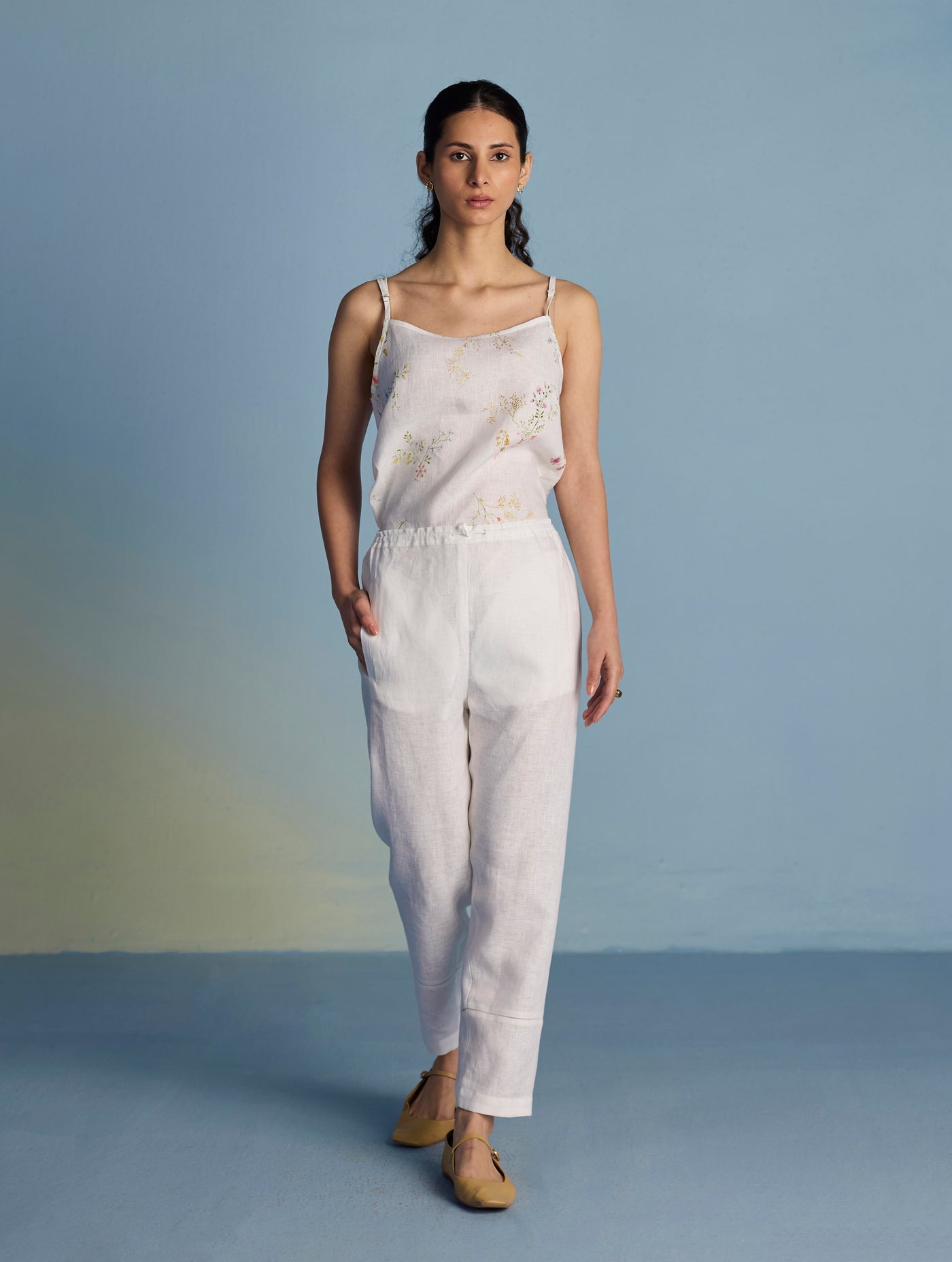 A timeless essential, these tapered linen trousers feature a comfortable elasticated waistband, drawstring tie, and deep side pockets. Handcrafted in our signature yarn-dyed linen, they’re detailed with a tonal faggoting stitch at the hem for a subtle, artisanal finish. Designed for versatility, they can be styled casually or dressed up with structured tops and accessories.