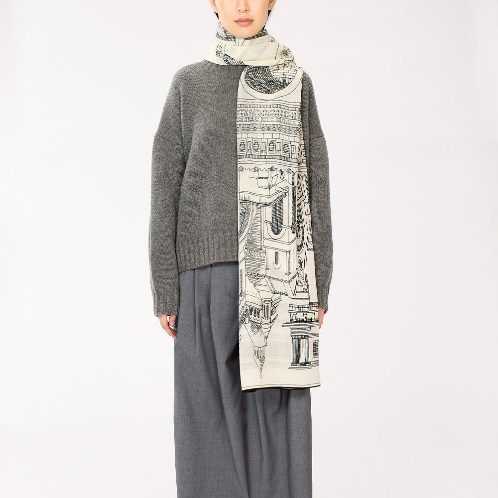 Every scarf tells a modern tale with refinement and imagination, an intersection between art and poetry. And each makes an indispensable and beautiful accessory!