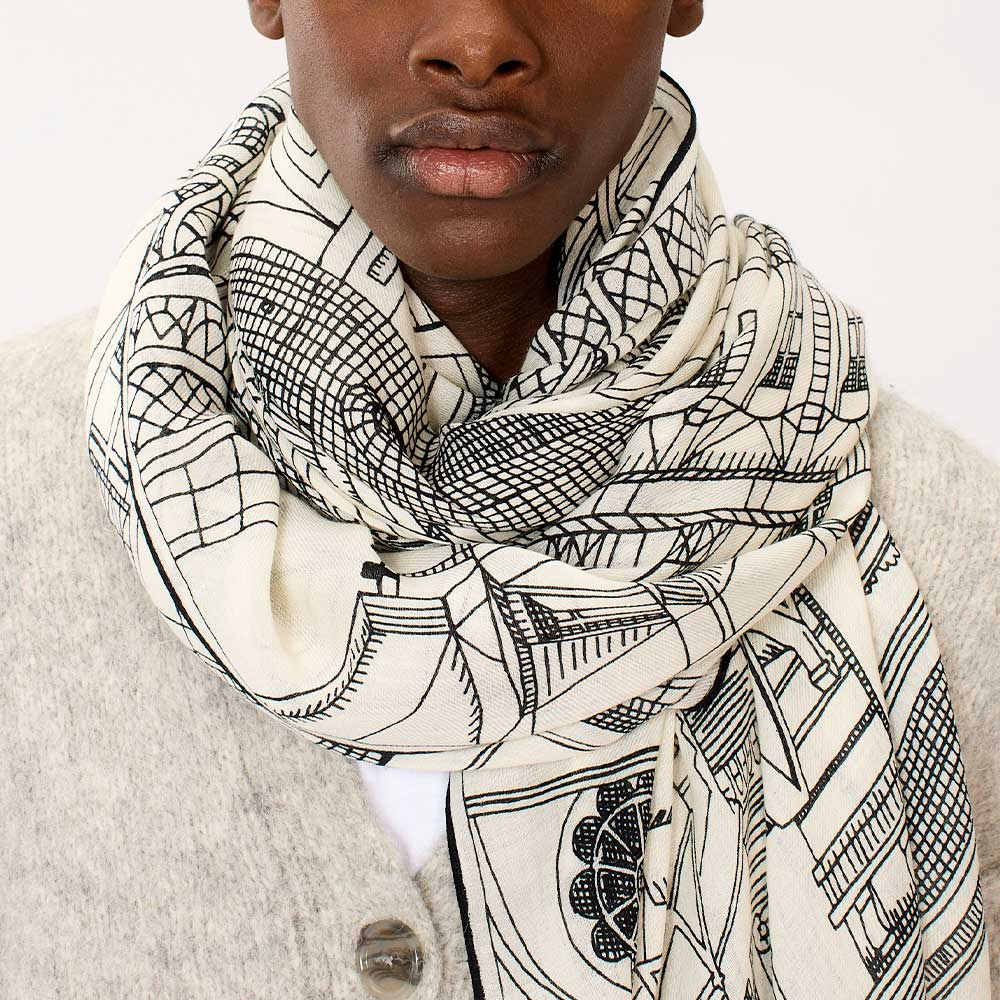 Each Inouï Editions scarf design is hand drawn in their atelier in Baie de Somme, France. The scarves are then made in India using traditional hand looming and printing techniques and the finest of natural fibres. The result is a whimsical and colourful collection that oozes Parisian bohemian charm.