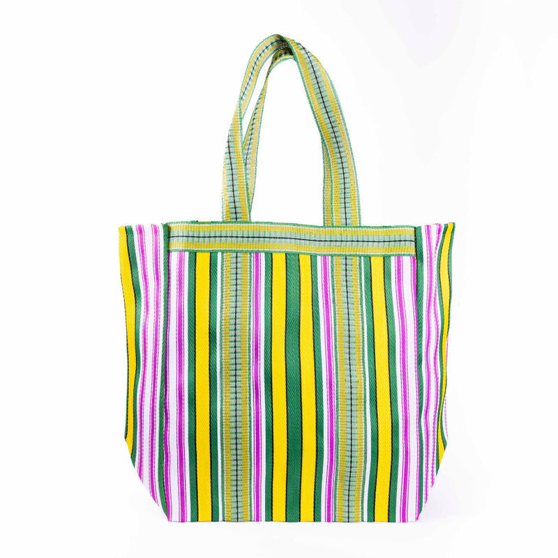 This vibrant, eco-friendly market or carry bag is made from recycled plastic, perfect for summer. Lightweight yet durable, it’s ideal for everyday use.