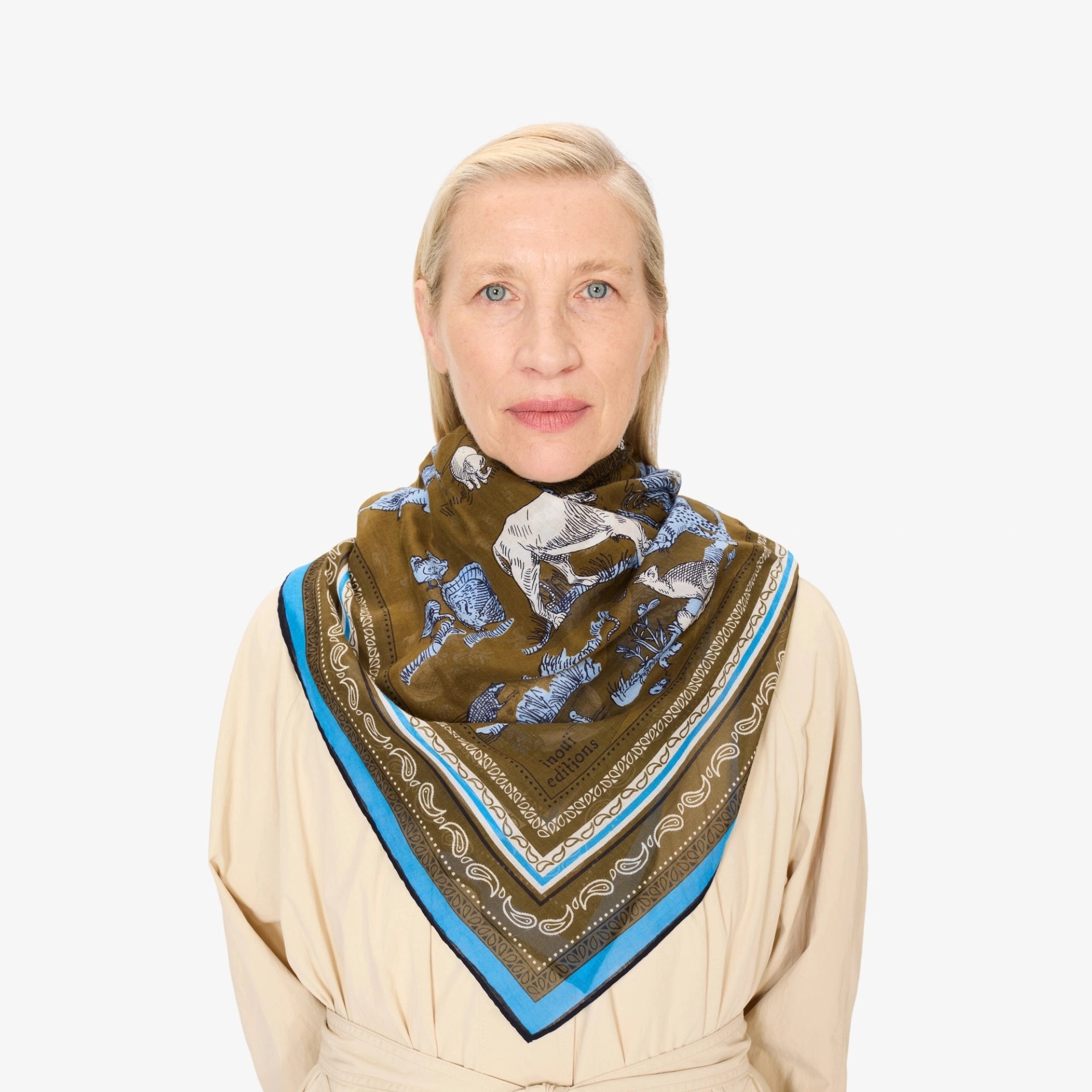 Each Inouï Editions scarf design is hand drawn in their atelier in Baie de Somme, France. The scarves are then made in India using traditional hand looming and printing techniques and the finest of natural fibres. The result is a whimsical and colourful collection that oozes Parisian bohemian charm.
